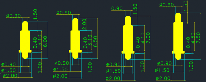 Pogo Pin kann SMT, DIP, Double Heads, Right Angle, Soldered, Screw, Rolling-Typen usw. sein, die Zeichnungen können wie unten dargestellt sein.